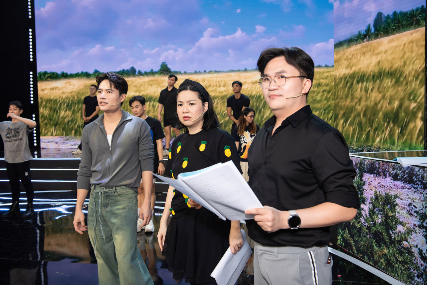 Dàn diễn viên quen mặt với khán giả đài THVL1 là Hòa Hiệp, Lê Nam, Tuyền Mập, Kim Đào, Hải Triều, Hồng Trang, Trà Ngọc, Lê Trang... có mặt trong buổi tổng duyệt.