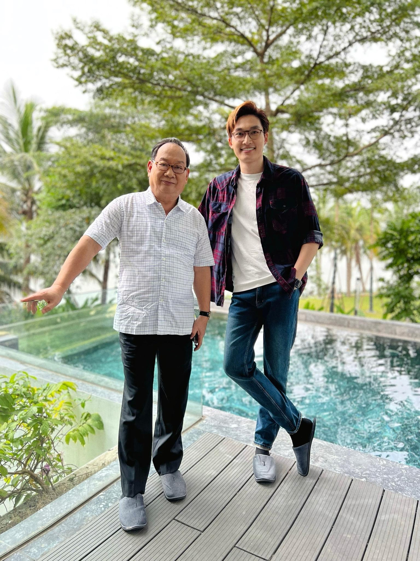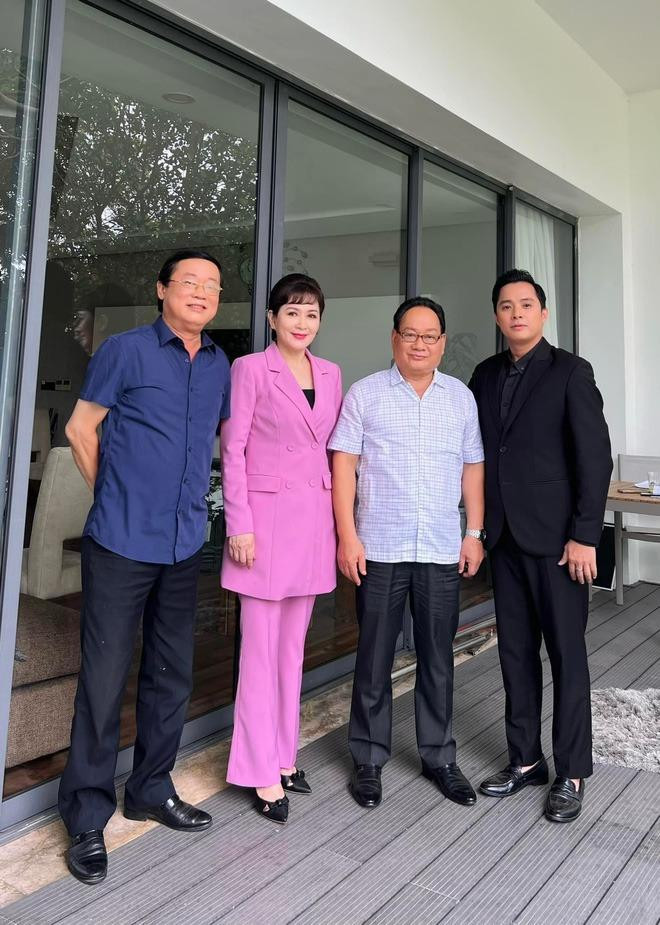 Vân Trang (Huyền Lizzie) và Hoàng Duy (Đình Tú) vui vẻ chung khung hình cùng NSND Tiến Đạt. Trong phim, mối tình của đôi trẻ bị ông Long can ngăn, chỉ cần giáp mặt nhau là sẽ tạo ra bầu không khí căng thẳng, nhưng những hình ảnh hậu trường thì trái ngược hoàn toàn.