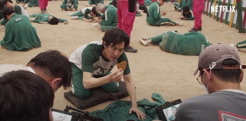 Ở trò này, để những người chơi, đặc biệt là nam chính Ki Hoon (Lee Jung Jae) có thể lấy được chiếc ô kẹo ra nguyên vẹn theo từng bước, đã có hẳn một đội ngũ “chuyên gia” đằng sau máy quay giúp anh.
