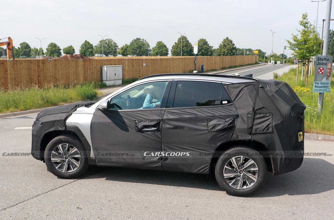 Mới đây, một nhóm phóng viên đã ghi nhận hình ảnh chiếc Tucson đang thử nghiệm tại Đức, với những lớp bạt che phủ toàn bộ phần ngoại thất từ mui đến đuôi xe.