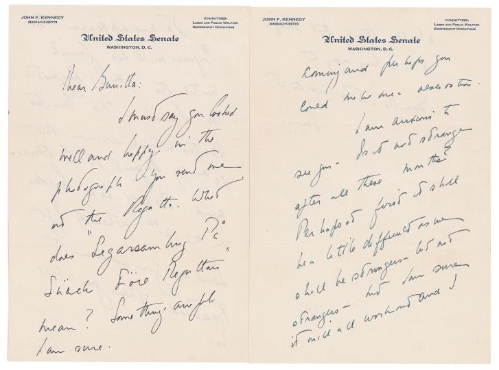 Những bức thư được viết trong khoảng thời gian từ năm 1955 đến năm 1956, trước khi ông Kennedy bắt đầu nhiệm kỳ Tổng thống Mỹ (1961-1963). Khi đó, ông đang giữ chức vụ Thượng nghị sĩ ở bang Massachusetts. Loại giấy được ông Kennedy sử dụng có in chữ “Thượng viện Mỹ”.
