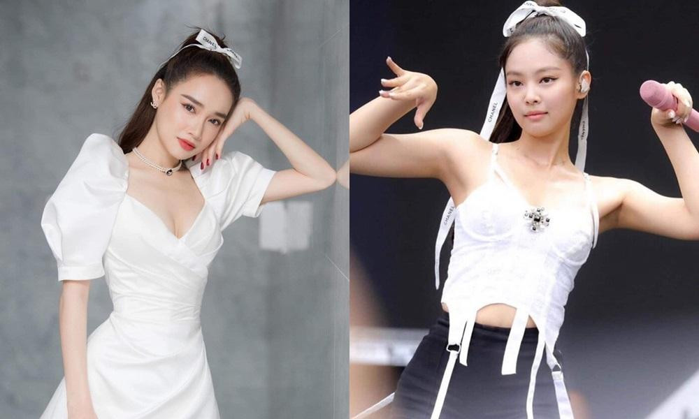 Hồi năm ngoái, Nhã Phương từng có màn "đụng hàng" dây buộc tóc Chanel với Jennie (BLACKPINK). Trong một lần tham dự sự kiện, Nhã Phương diện bộ váy trắng tay bồng đúng chất tiểu thư cổ điển, đeo vòng cổ Chanel giá gần 100 triệu đồng nhưng netizen lại chú ý nhiều hơn đến nơ buộc tóc của Nhã Phương.