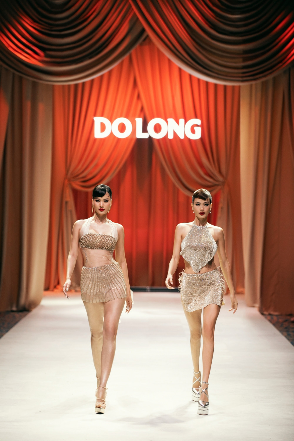 Màn catwalk đôi của Như Vân - Hương Ly khiến cả khán phòng vỡ òa. Không chỉ ấn tượng về trang phục mà kỹ năng trình diễn, catwalk đồng điệu của hai người đẹp cũng khiến không khí thêm nóng lên.
