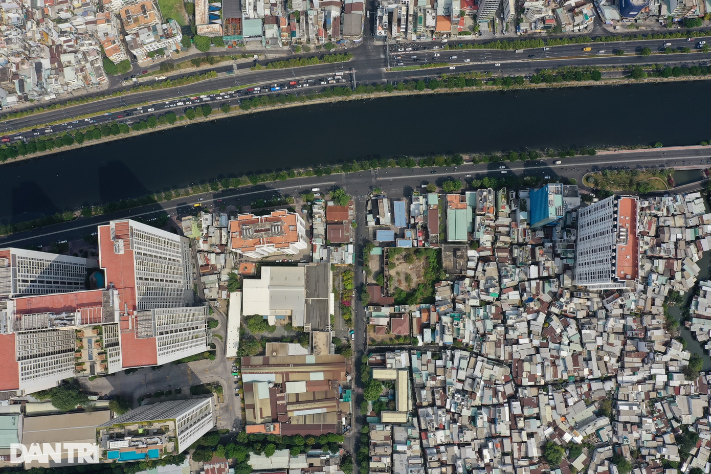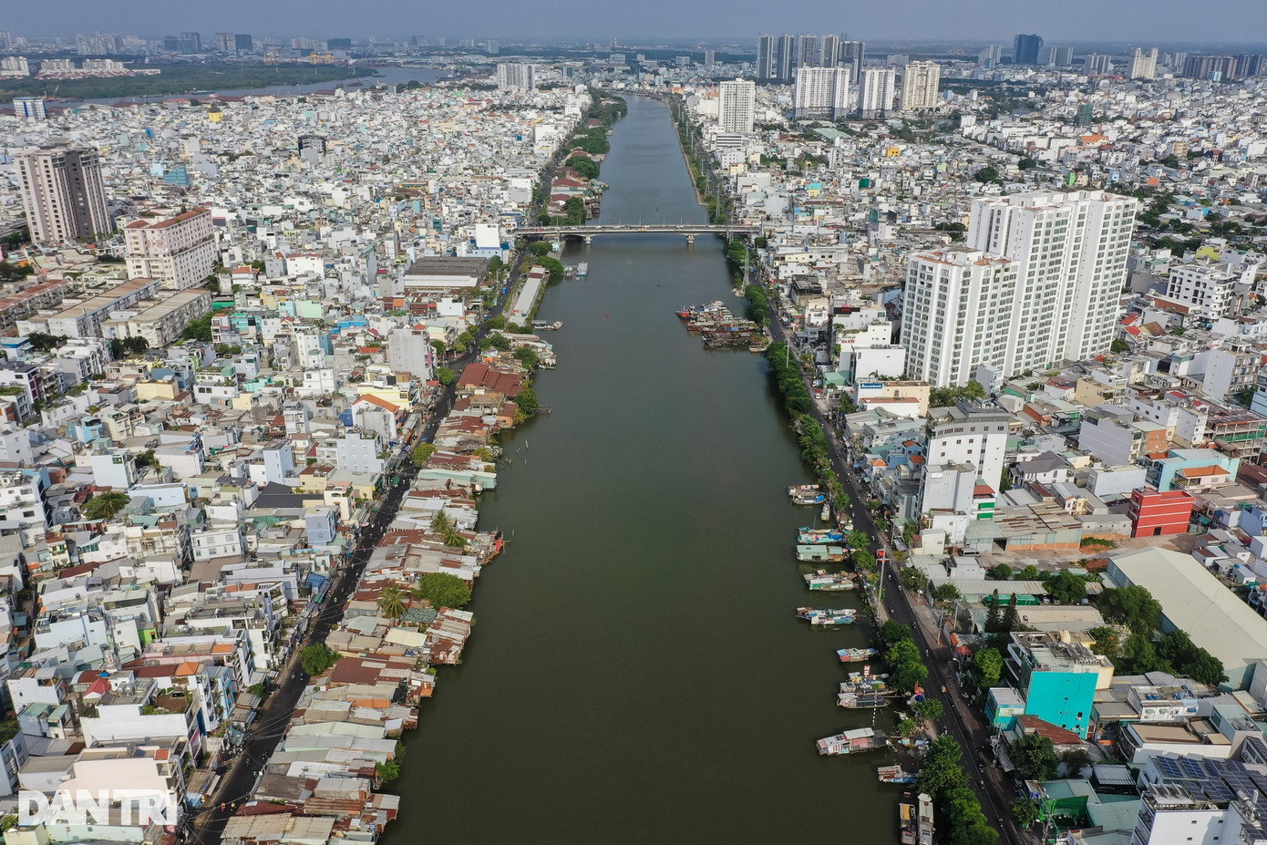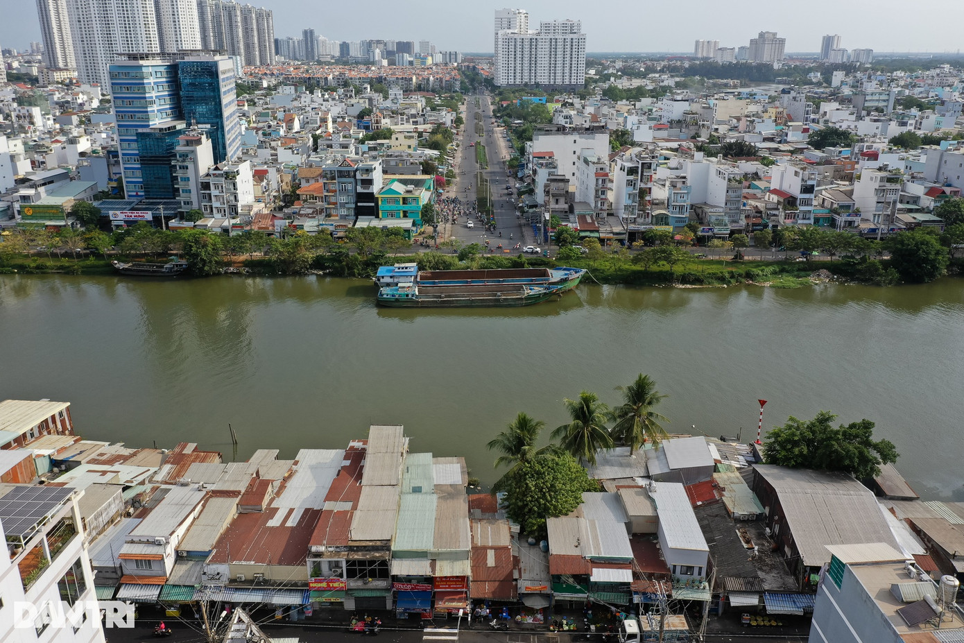 Hiện trạng hai bờ kênh Tẻ, bên phải là quận 4, bên trái là quận 7. Khi có cầu đường Nguyễn Khoái, người dân có thêm sự lựa chọn khi di chuyển từ quận 7, quận 4 vào trung tâm thành phố.