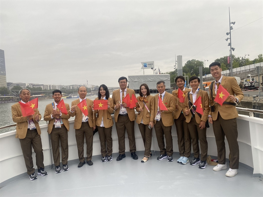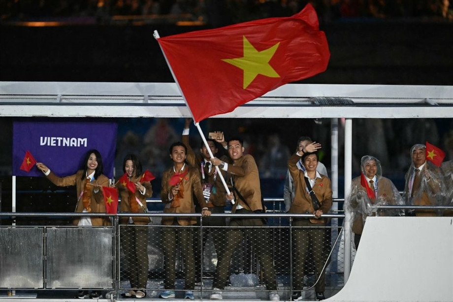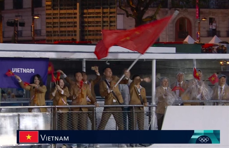 Đoàn thể thao Việt Nam diễu hành với 10 thành viên, trong đó có 6 VĐV gồm: Lê Đức Phát, Nguyễn Thùy Linh, Đỗ Thị Ánh Nguyệt, Lê Quốc Phong, Nguyễn Thị Thật. Đoàn thể thao Pháp, chủ nhà của Olympic năm nay, xuất hiện cuối cùng.