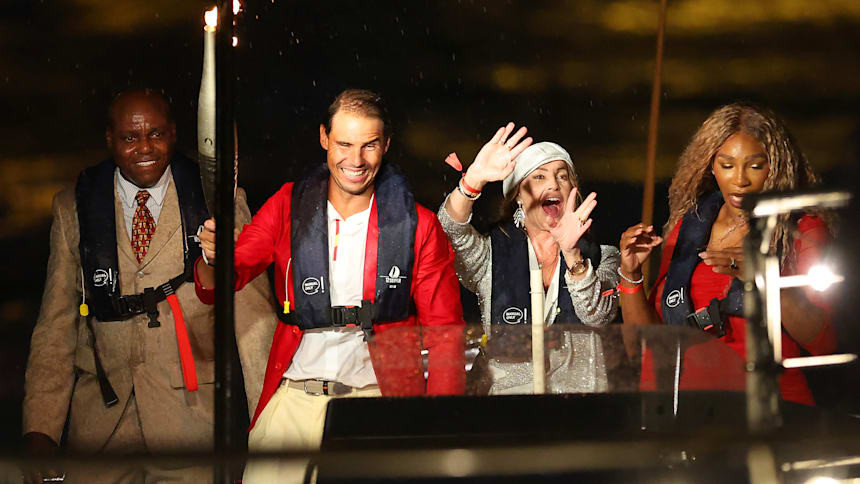 Sau quãng đường dài trên sông Seine, Nadal đã truyền đuốc cho cựu tay vợt người Pháp Amelie Mauresmo. Ngọn đuốc Olympic được truyền tay qua nhiều cựu vận động viên thành tích cao của Pháp.