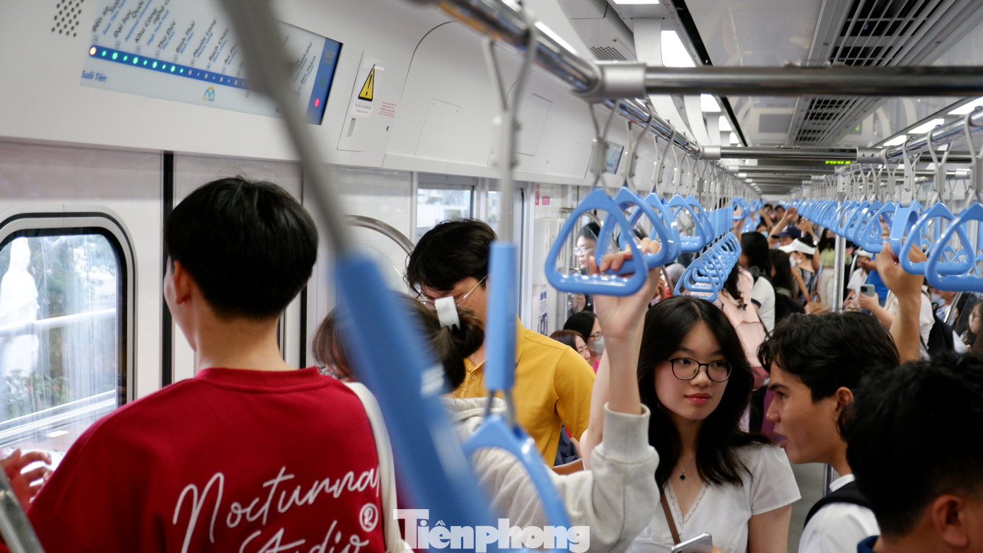 | Nhiều hành khách đi trải nghiệm tàu metro TPHCM. |
