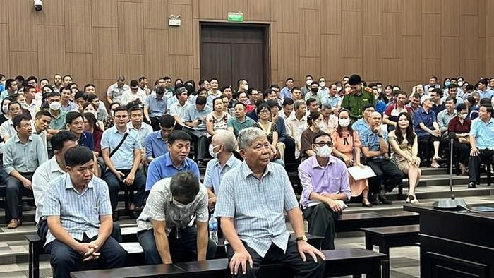 Tới giờ làm việc, 6 bị cáo nguyên là cựu lãnh đạo phường Kiến Hưng (quận Hà Đông, Hà Nội) và cựu thanh tra quận Hà Đông đã có mặt tại phòng xử án.