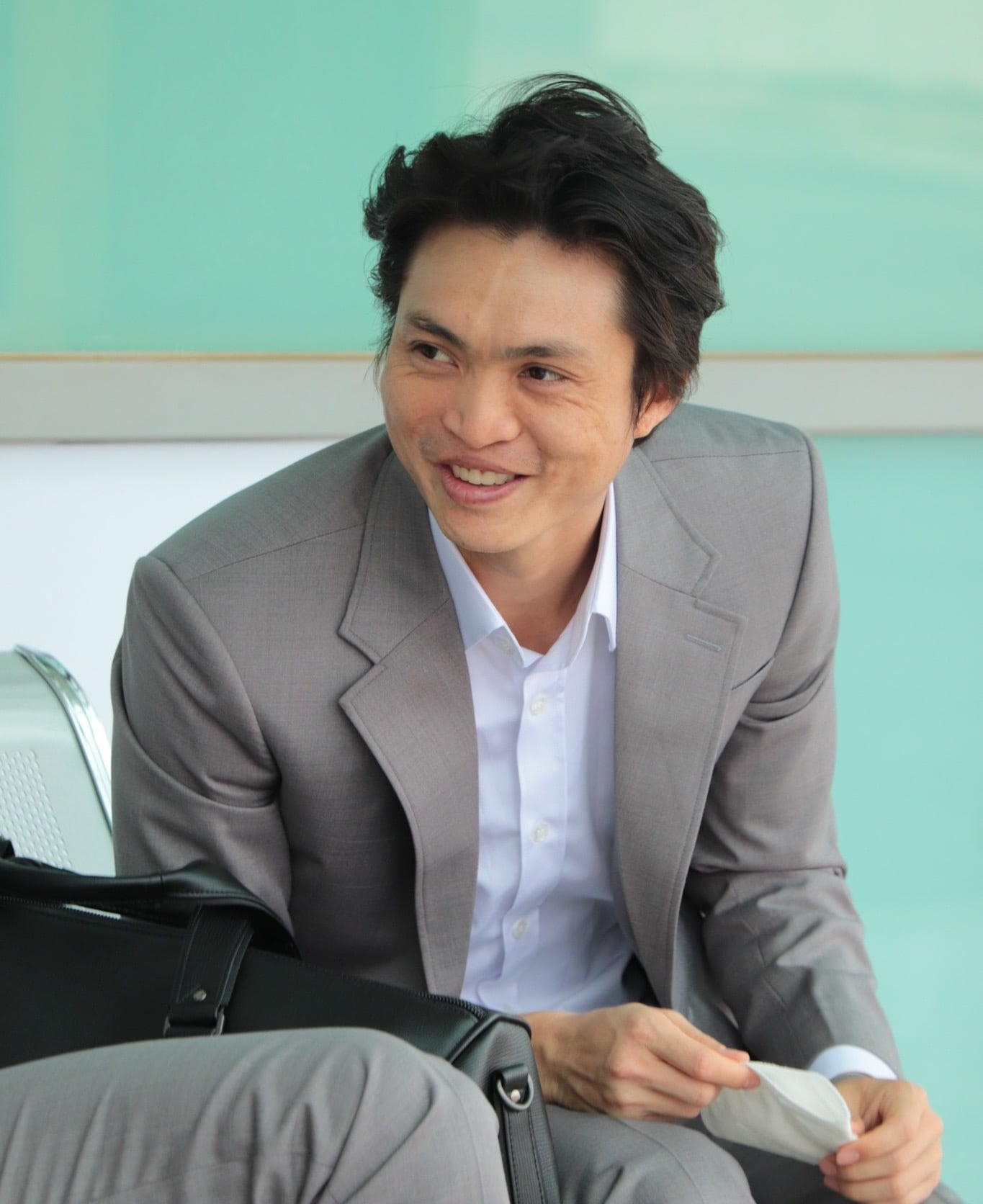 | Đáng yêu hình ảnh HLV Kiatisuk bế con của Công Phượng tại sân bay. |