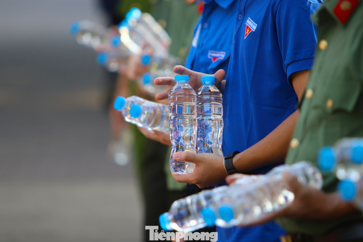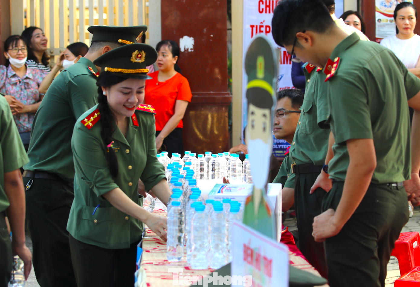 Các thí sinh được chiến sĩ công an, đoàn viên phát nước, tiếp sức vào phòng thi.