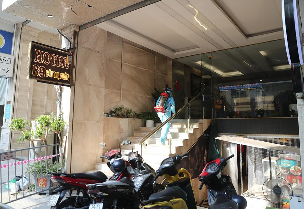 Địa điểm khách sạn ở số 89 phố Bùi Thị Xuân được phong tỏa ngay sau khi có thông tin xuất hiện ca nhiễm COVID-19.