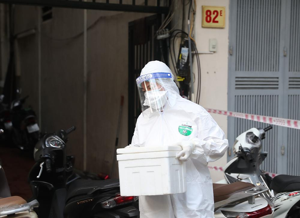 Đội ngũ y tế quận Hai Bà Trưng tiến hành sàng lọc và truy vết những người liên quan và tiếp xúc gần với những ca dương tính với SARS-CoV-2.
