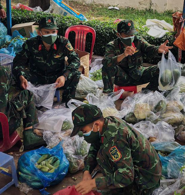 Điển hình như trong clip dưới đây, hình ảnh các anh bộ đội đang tỉ mẩn nhặt và xếp từng ngọn rau, chia từng quả cà chua... để mang cho bà con nhân dân khiến người xem vô cùng xúc động.