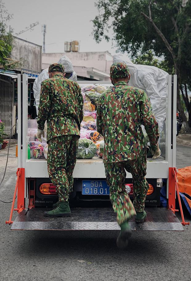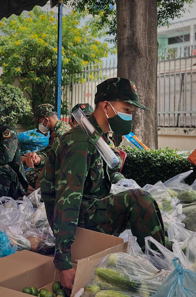 Lực lượng quân đội được huy động để hỗ trợ cả thành phố chống dịch COVID-19, phối hợp với các quận, huyện đưa thực phẩm đến nhà dân.
