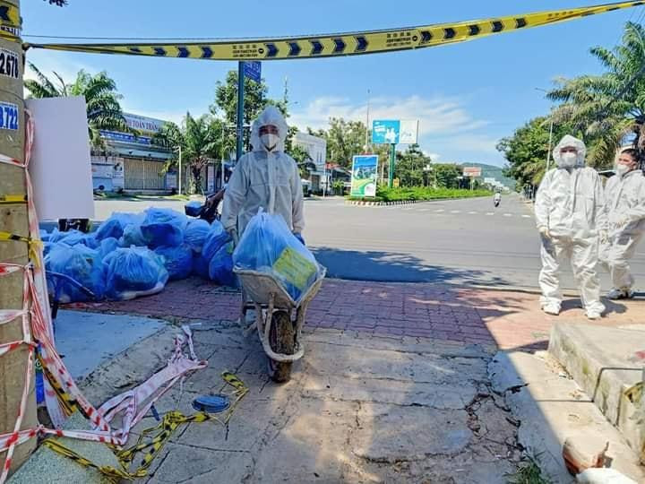 Do xuất hiện ca nhiễm, thị trấn Long Hải (Vũng Tàu) thực hiện giãn cách xã hội rất nghiêm ngặt. Để đảm bảo đủ lương thực cho bà con, các anh bộ đội đã không ngại nắng mưa vận chuyển.