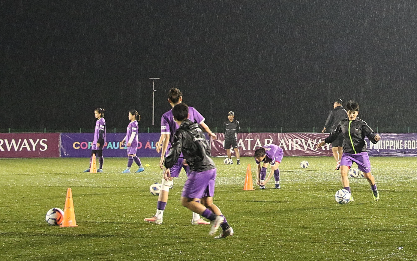 Tối 4/7, đội tuyển nữ Việt Nam có buổi tập đầu tiên, làm quen mặt cỏ nhân tạo sân Trung tâm đào tạo bóng đá quốc gia (PFF National Training Centre), Manila, Philippines.