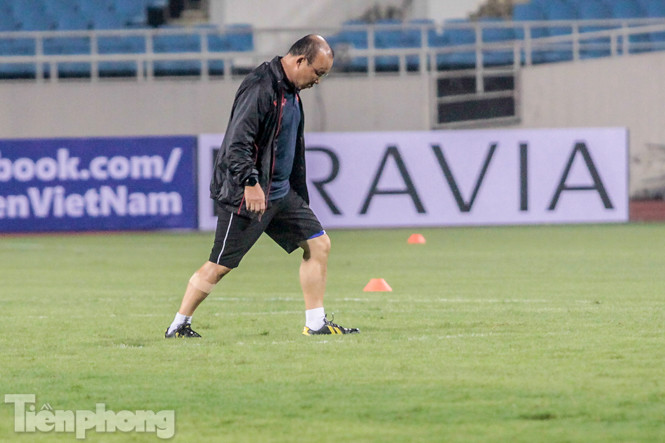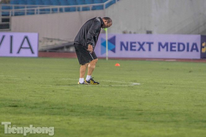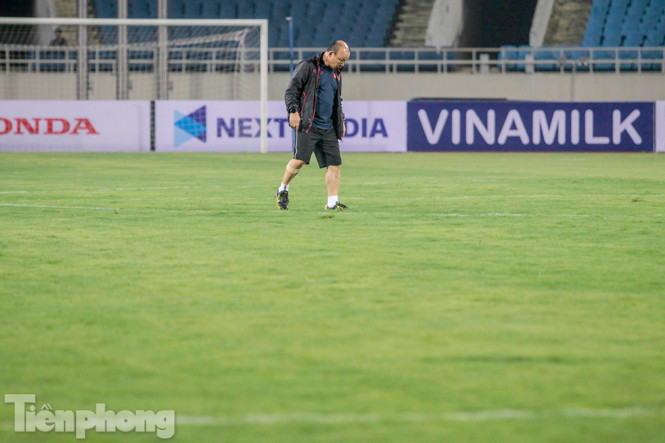 HLV Park Hang Seo dành nhiều thời gian đi quanh sân để kiểm tra mặt cỏ.