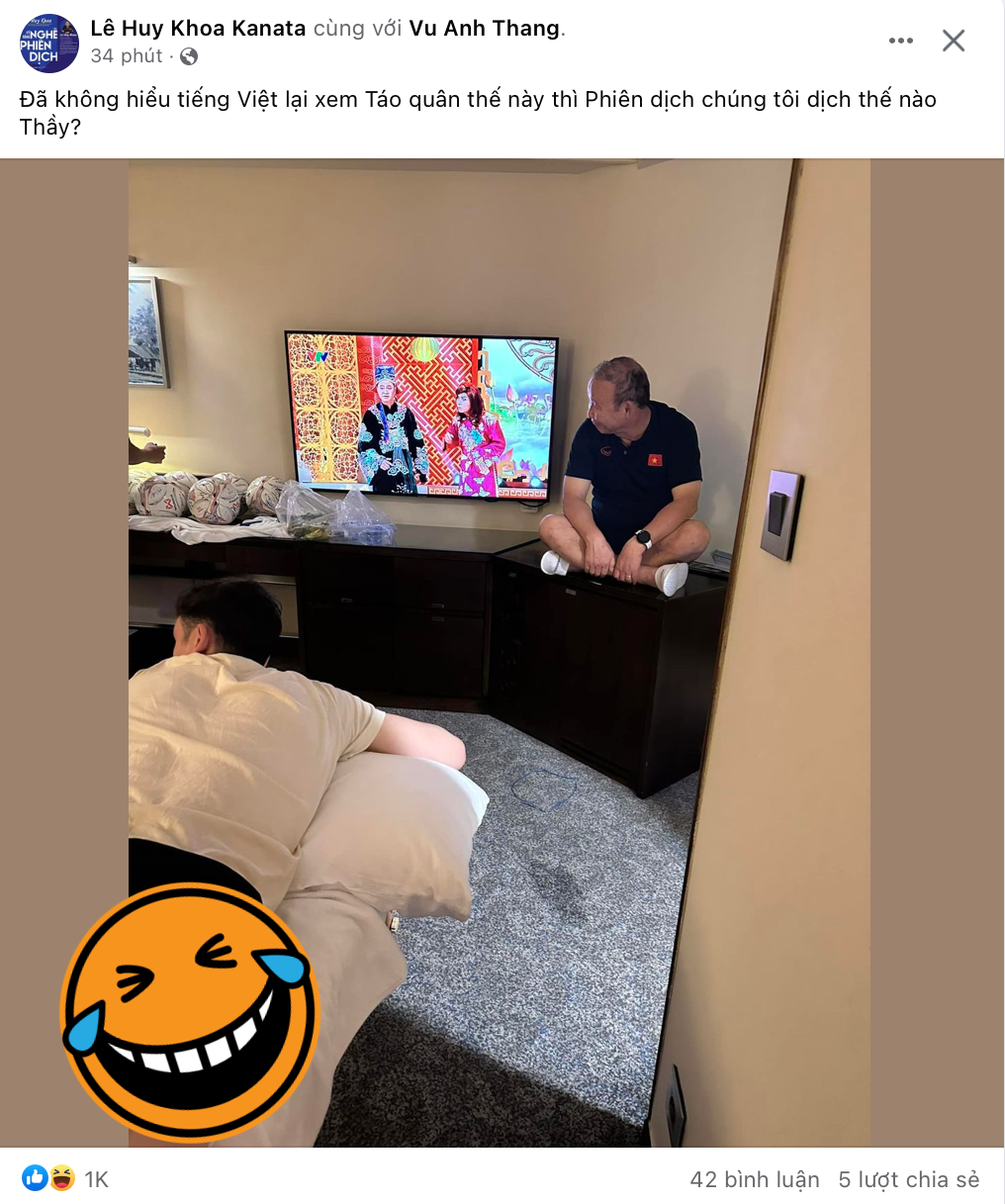 Ông Lê Huy Khoa - trợ lý ngôn ngữ của HLV Park Hang-seo cũng đã đăng tải hình ảnh này kèm theo dòng trạng thái: "Đã không hiểu tiếng Việt lại xem Táo Quân thế này thì phiên dịch chúng tôi dịch thế nào thầy?".