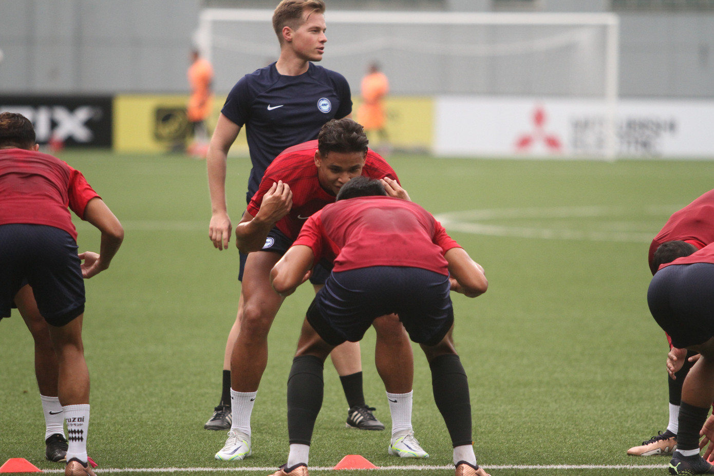 Cụ thể ở buổi tập chiều nay trên sân Jalan Besar, HLV Nishigaya bất ngờ để cầu thủ Singapore mặc áo không số. Các cầu thủ Singapore tỏ ra khá thoải mái và vui vẻ tập luyện trước sự theo dõi của phóng viên Việt Nam bên ngoài đường pist.