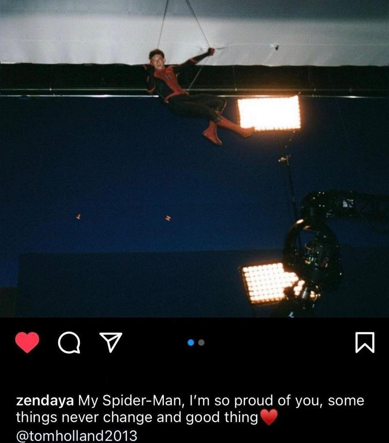 Zendaya sau đó đã bình luận: “Đang gọi nè”, kèm theo một trái tim. Sau đó, trong một lần khác, đến lượt Zendaya thể hiện tình cảm của mình khi viết trên Instagram: “Người Nhện của mình, tự hào về cậu lắm”.