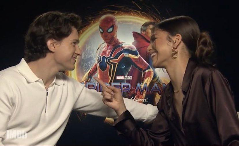 Dù không công khai hay xác nhận chuyện hẹn hò, các fan có thể thấy mật ngọt khắp nơi mỗi khi Tom Holland và Zendaya cùng xuất hiện trong chuỗi quảng bá cho Spider-Man: No Way Home. Như khi được hỏi Tom đã trộm gì từ trường quay Spider-Man, không búa không khiên như người khác, Tom quay sang nhìn Zendaya và đáp: “Trái tim em đó.”