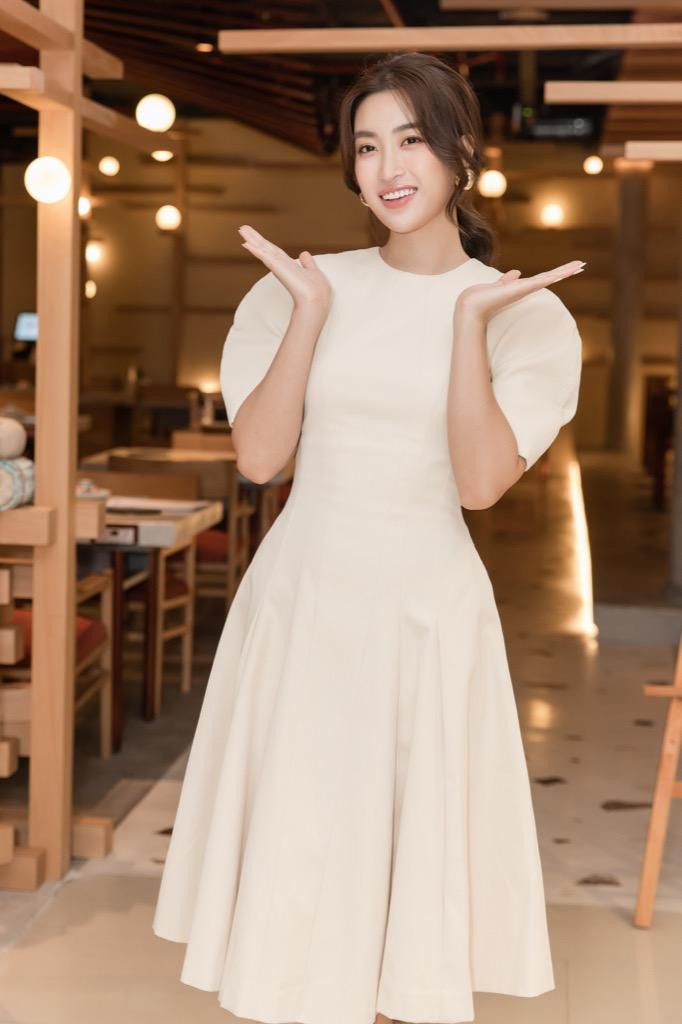 Hoa hậu Đỗ Mỹ Linh tiết lộ cô đang vận hành một cửa hàng thời trang kinh doanh các mẫu trang phục thiết kế mang thương hiệu của chính mình. Nàng hậu hào hứng chia sẻ chiếc váy trắng cô diện hôm nay đến từ thương hiệu của mình.