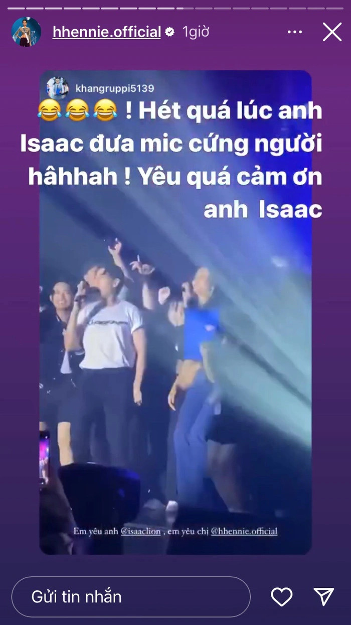 Sau khi kết thúc sự kiện, trên trang cá nhân của mình, nàng hậu người Ê-đê bày tỏ sự hào hứng: "Này có được gọi là fangirl chính hiệu không ạ anh #ISAAC ơi, cháy quá". Trước tình cảm của Hoa hậu H'Hen Niê, Isaac bày tỏ: "H'Hen Niê 10 điểm. Isaac là người rất hâm mộ H'Hen Niê đó ạ".