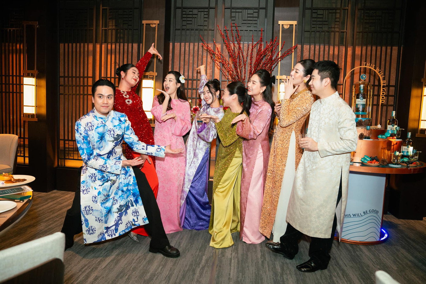 Trong một sự kiện tất niên, người đẹp chọn một thiết kế áo dài lụa đến từ nhà thiết kế Andrian Anh Tuấn. Bộ áo dài lụa hồng kết hợp cùng phụ kiện hoa lan, ngọc trai đem mang đến cảm giác nhẹ nhàng, duyên dáng.