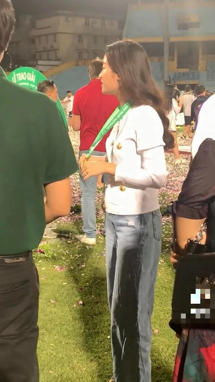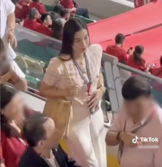 Khi cùng gia đình sang Singapore cổ vũ đội bóng đá, Đỗ Mỹ Linh cũng có khoảnh khắc dùng tay che chắn vòng hai khi di chuyển trên khán đài. Hành động này càng làm cư dân mạng tin rằng hai vợ chồng nàng hậu đã có tin vui.