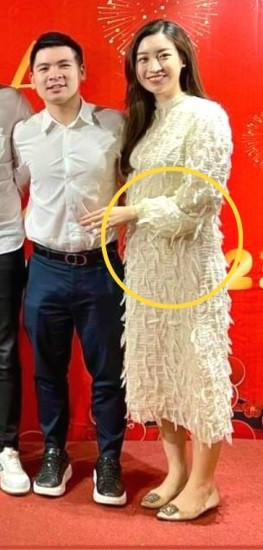 Mới đây, khi Đỗ Mỹ Linh tham dự một bữa tiệc của công ty chồng, cô đã chọn một bộ váy dáng suông. Tuy vậy, nhiều người cho rằng nàng hậu vẫn không thể giấu được vòng 2 khá lớn. Ngoài ra, đôi giày bệt cũng là dấu hiệu cho thấy nàng hậu nhiều khả năng đang mang thai nên cần hạn chế giày cao gót.