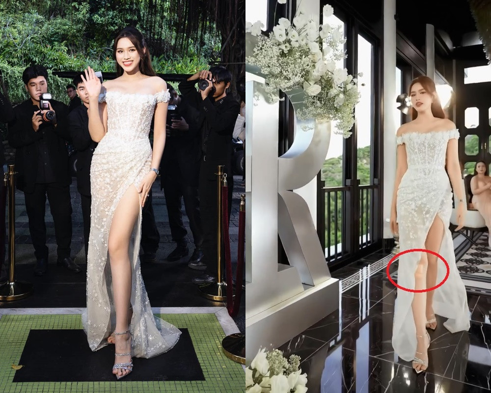 Kết quả là khi làm khách mời trong một show thời trang, Hoa hậu Đỗ Thị Hà đã chọn mặc bộ váy có đường xé cao vút bên trái, giúp cô chỉ lộ chân trái và giấu kín được chân phải bị thương trong tà váy dài. Khi tạo dáng chụp ảnh, nàng hậu cũng chỉ đưa chân trái lên trước mà thôi.