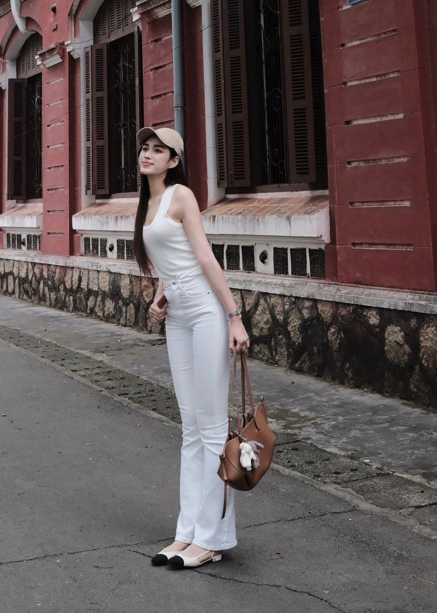 Hoa hậu Đỗ Thị Hà vừa có mặt ở Quảng Trị để tham gia giải chạy Tiền Phong Marathon và sau đó, nàng hậu ghé qua cố đô Huế. Khi đi thăm trường Quốc học Huế, Đỗ Thị Hà diện set đồ trắng đơn giản, tôn dáng mà vẫn nổi bật.