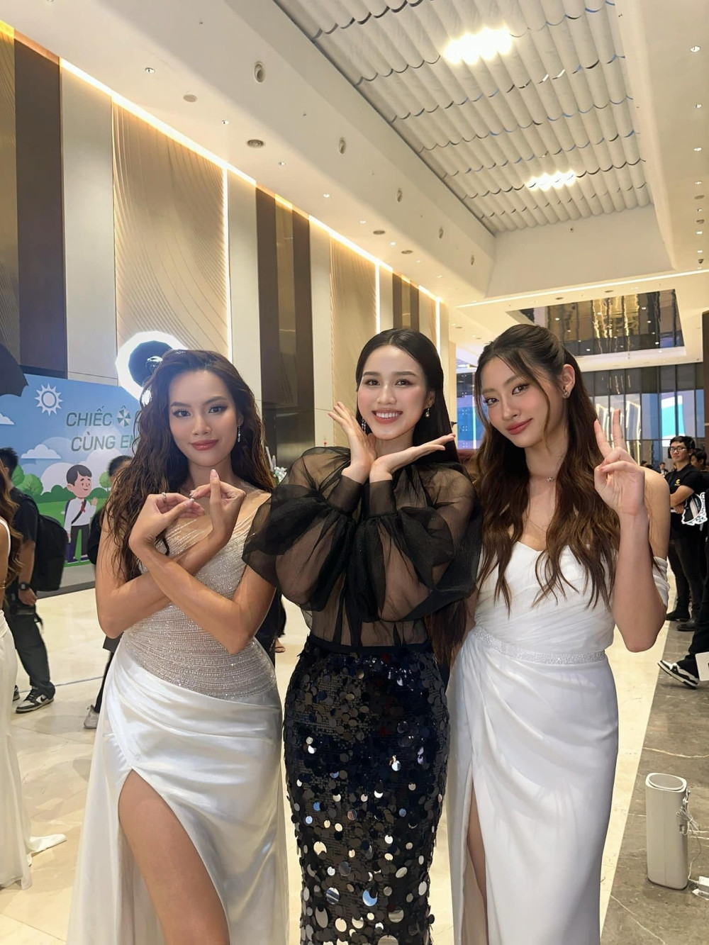Hoa hậu Việt Nam 2020 Đỗ Thị Hà là người đẹp diện thiết kế này gần đây nhất, trong một sự kiện cùng Hoa hậu Lê Hoàng Phương và Lương Thùy Linh.