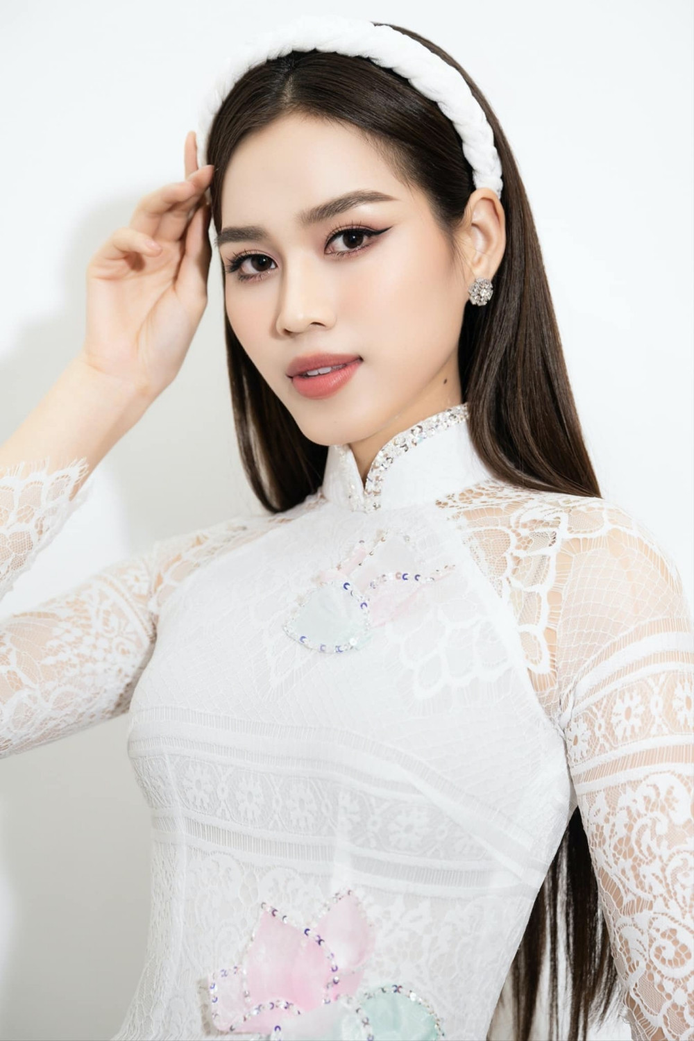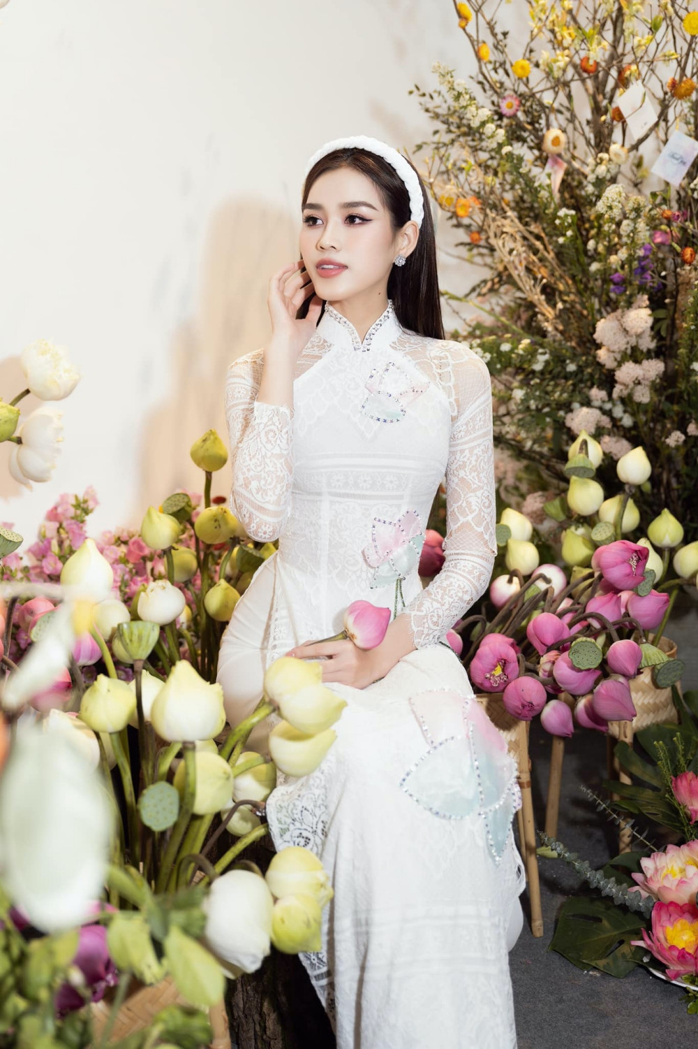 Tại triển lãm nghệ thuật Sen Việt - Vẻ Đẹp Thuần Khiết cách đây ít ngày, Hoa hậu Đỗ Thị Hà mang đến vẻ đẹp tinh khôi trong tà áo dài trắng, được thêu đính hoa sen tinh tế, đẹp mắt.