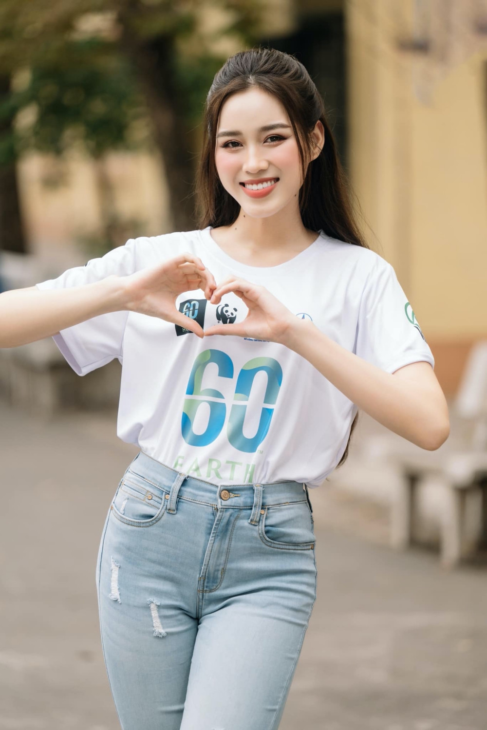 Hoa hậu Đỗ Thị Hà mặc áo phông trắng đơn giản trong hoạt động tuyên truyền cho Giờ Trái Đất 2023.