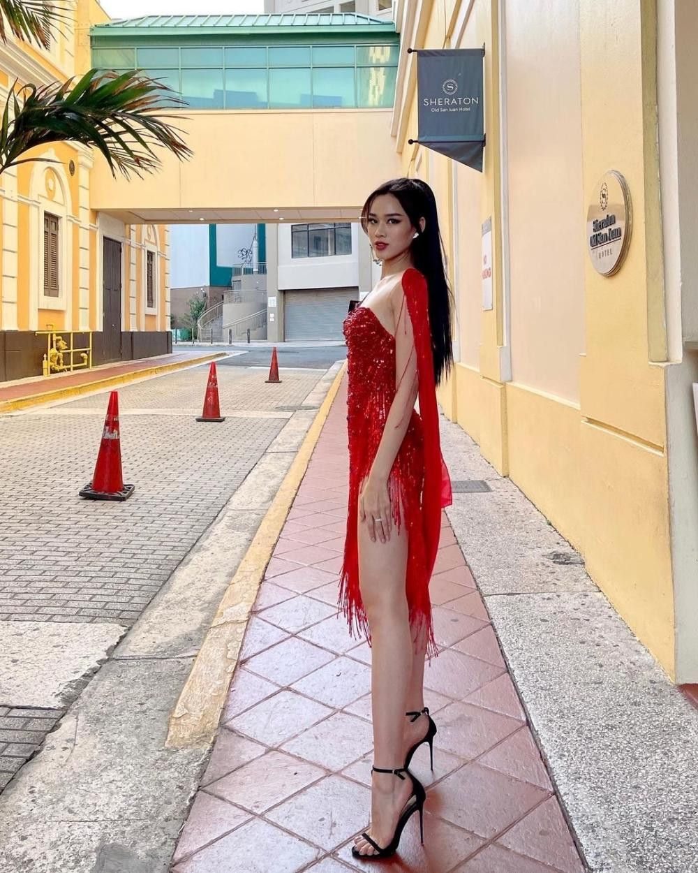 Bộ váy giúp nổi bật làn da trắng sứ của Hoa hậu Đỗ Thị Hà, đồng thời khoe trọn lợi thế đôi chân dài thẳng tắp nổi tiếng của nàng hậu.