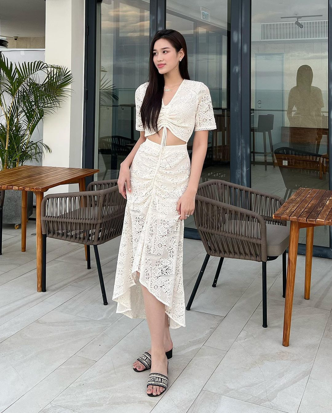 Thời gian gần đây, người hâm mộ để ý thấy Hoa hậu Đỗ Thị Hà ưa chuộng đồ ren. Những bộ váy ren mỏng manh giúp nàng hậu nhìn vừa dịu dàng nữ tính, vừa khoe được vóc dáng ngày càng thon gọn.
