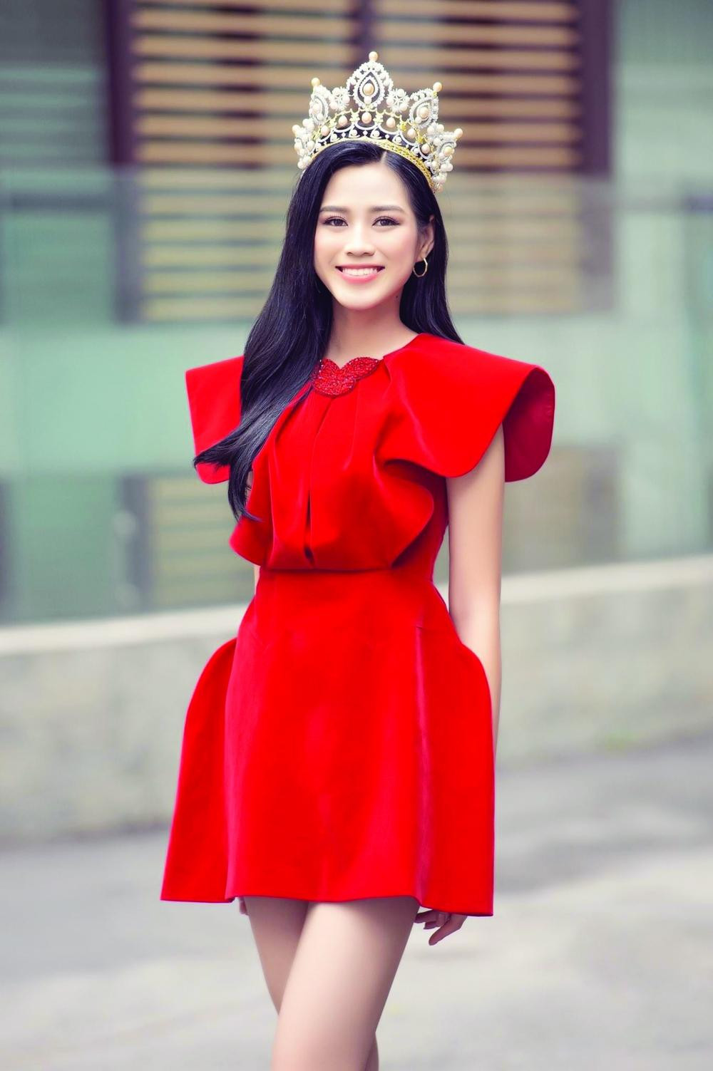 Khi mới đăng quang Hoa hậu Việt Nam 2020, Đỗ Thị Hà vẫn giữ lối ăn mặc kín đáo, đơn giản. Váy áo cô lựa chọn thời gian này thường có kiểu dáng 'kín cổng cao tường', chỉ hở đôi chân thắng tắp dài 1m11 mà thôi.