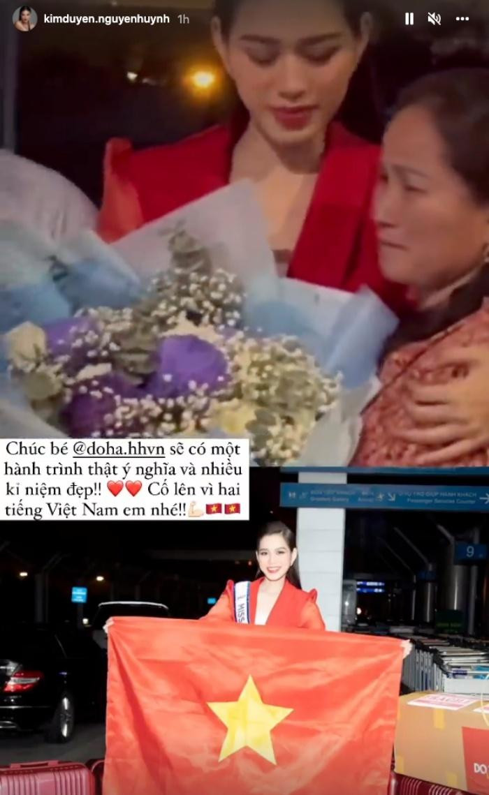 Á hậu Kim Duyên cũng đã gửi lời chúc tới Hoa hậu Đỗ Thị Hà trên trang cá nhân. Hai cô gái sẽ có lịch trình trùng nhau trong thời gian tới tại hai đấu trường nhan sắc lớn nhất hành tinh là Miss World và Miss Universe.