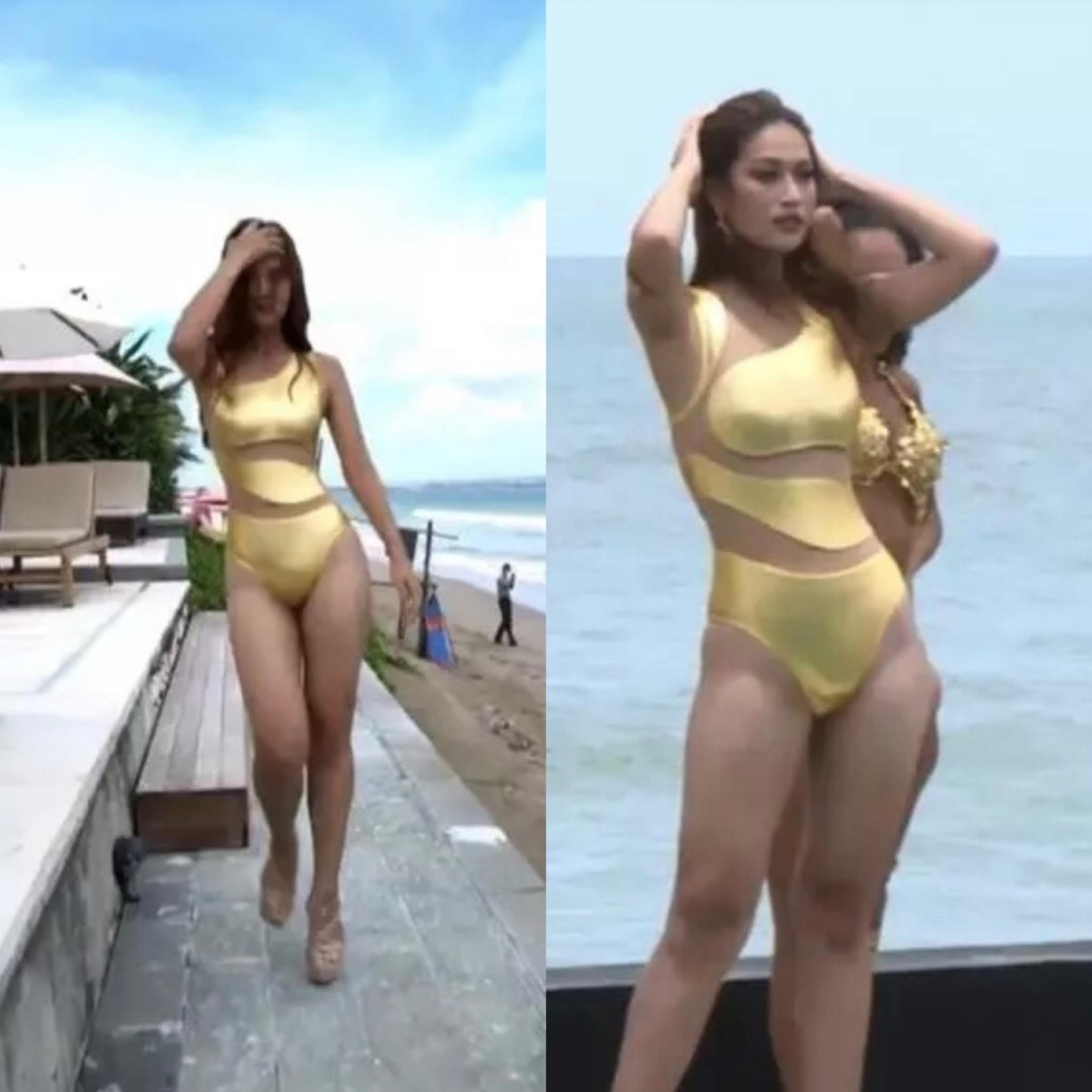 Khi tham gia phần thi trang phục áo tắm ở Miss Grand International 2022, Đoàn Thiên Ân cũng đã nỗ lực giảm cân để có thể khoe thân hình thon thả, đôi chân săn chắc không thua kém các nàng hậu khác.