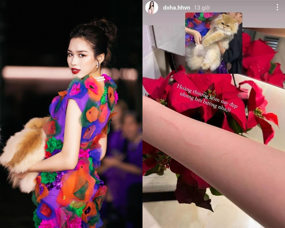 Đây không phải lần đầu tiên Đỗ Thị Hà chịu đau để có những màn xuất hiện đẹp mắt trước công chúng. Trong một đêm diễn thời trang, cô cùng Lương Thùy Linh, Mai Phương bước trên sàn catwalk với những chú mèo lông xù. Chẳng ngờ khi đang trình diễn, con mèo trên tay Đỗ Thị Hà đã bỏ chạy khiến nàng hậu bối rối và còn để lại những vệt xước dài trên hai cánh tay của cô.