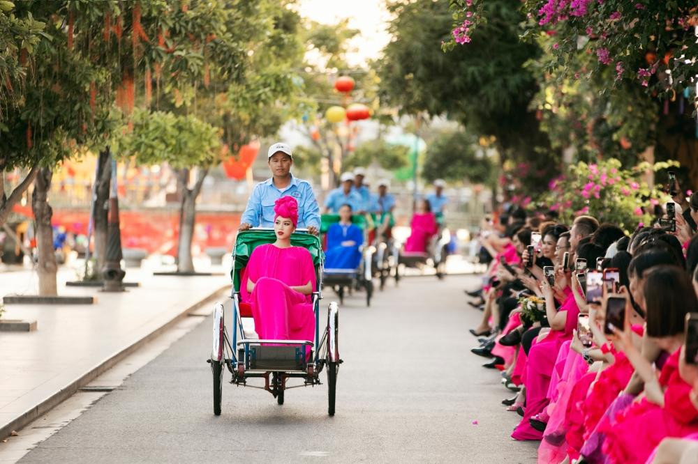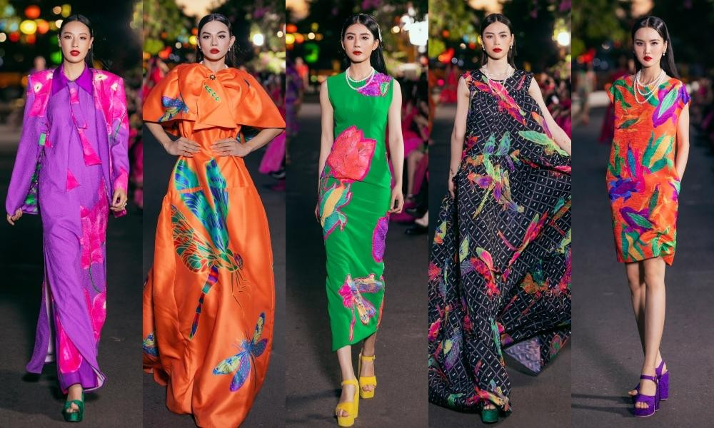 HHTO - Trong ánh nắng rực rỡ của buổi chiều đầu hạ ở phố cổ Hội An, VUNGOC&SON đã đưa khách mời đến với chuyến viễn du thời trang đẹp mãn nhãn. Show diễn có tới 7 vedette đều là những gương mặt đình đám: Hoa hậu Đỗ Thị Hà, Hoa hậu Tiểu Vy, Á hậu Kim Duyên, siêu mẫu Minh Tú, Võ Hoàng Yến, Vũ Thu Phương…