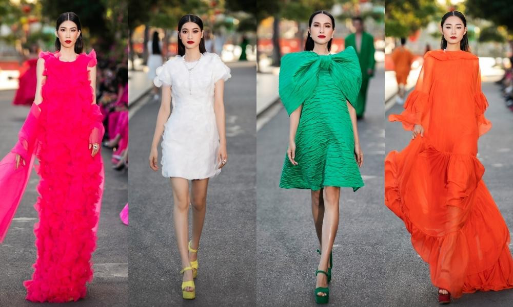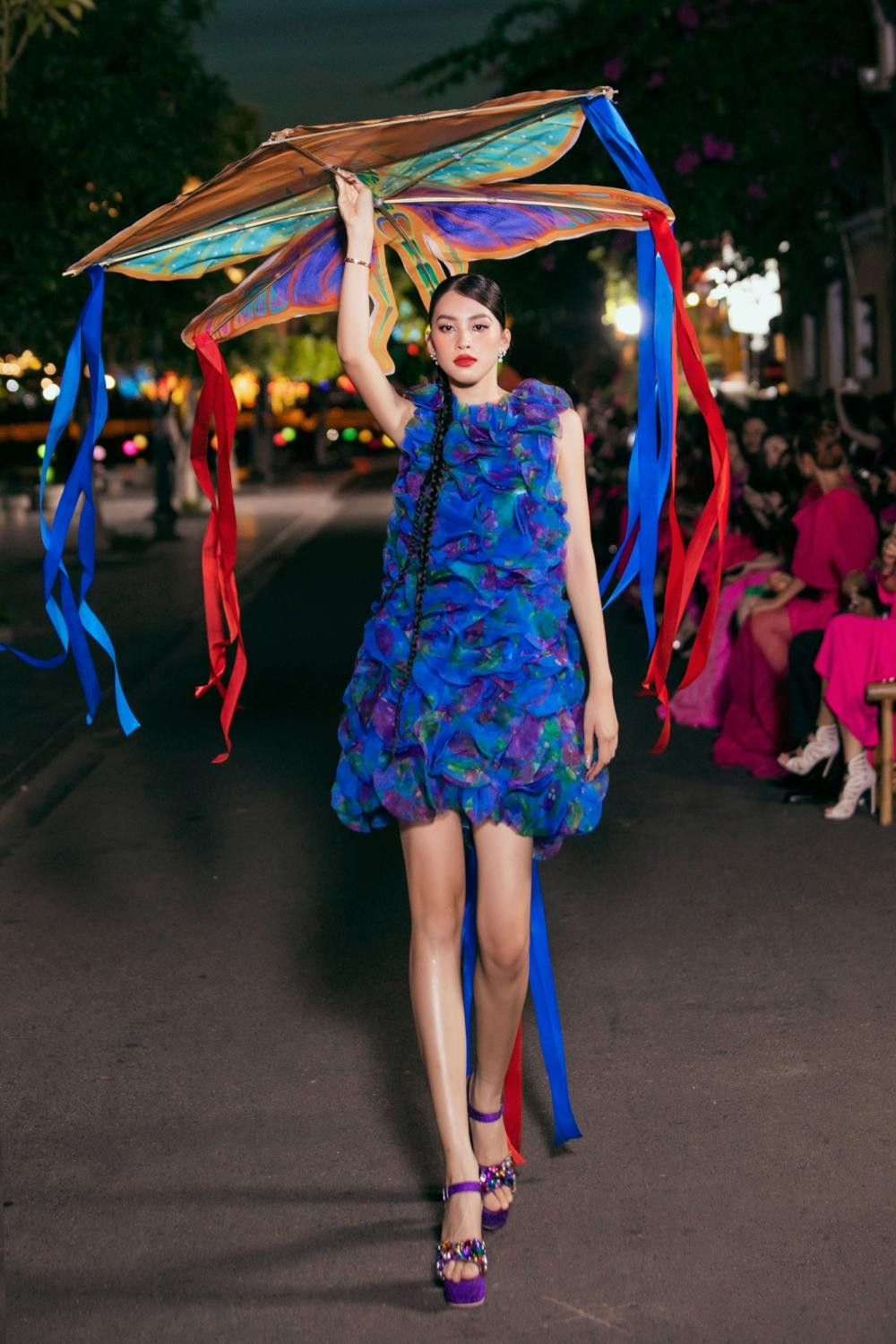 Khép lại show diễn là bộ ba vedette siêu mẫu Võ Hoàng Yến, Hoa hậu Tiểu Vy và siêu mẫu. Hình ảnh kết show đầy thời trang mà cũng gợi nhắc Vùng trời bình yên bởi hình ảnh cánh diều tuổi thơ.