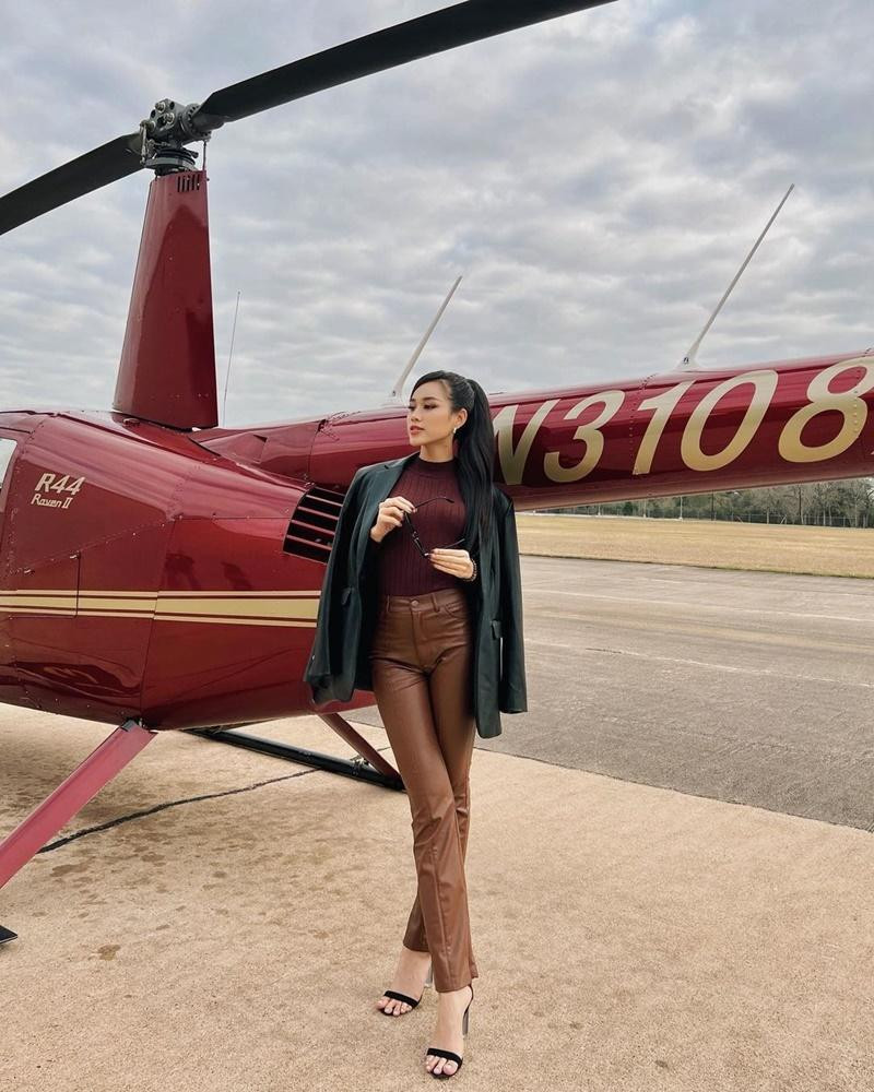 Người đẹp có vẻ rất phấn khích với chuyến đi, đây là lần đầu tiên cô có trải nghiệm này. Đỗ Thị Hà còn ước ao giá như có thể bay về Việt Nam luôn với chiếc trực thăng này.