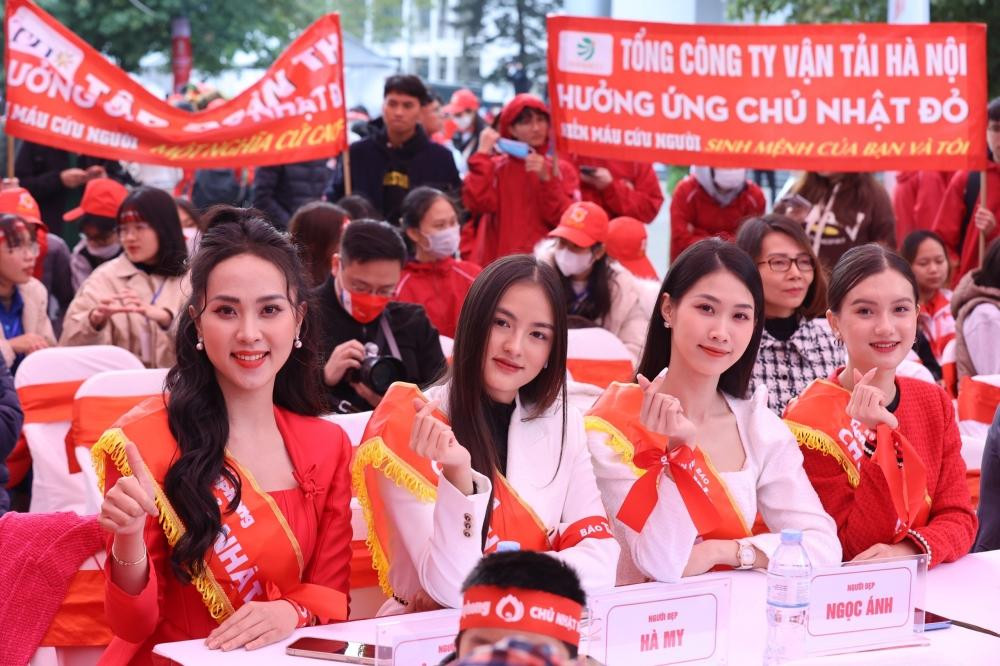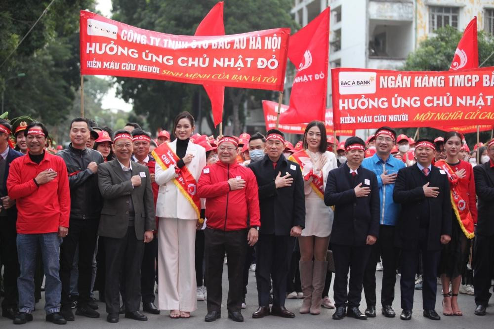 Hoa hậu Đỗ Thị Hà, Á hậu Phương Nga… tham gia diễu hành cổ động sự kiện Chủ nhật Đỏ.