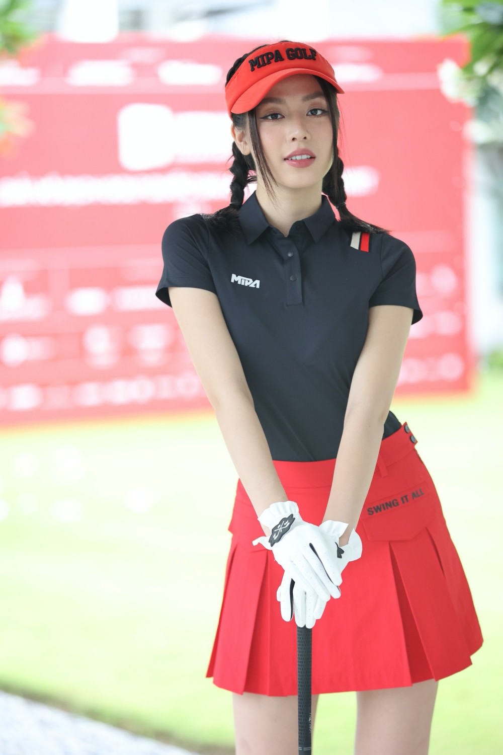 Hoa hậu Huỳnh Thị Thanh Thủy chọn trang phục với tông màu đỏ - đen, tết tóc hai bên trẻ trung, nhận được nhiều lời khen vì nhan sắc ngày càng thăng hạng.