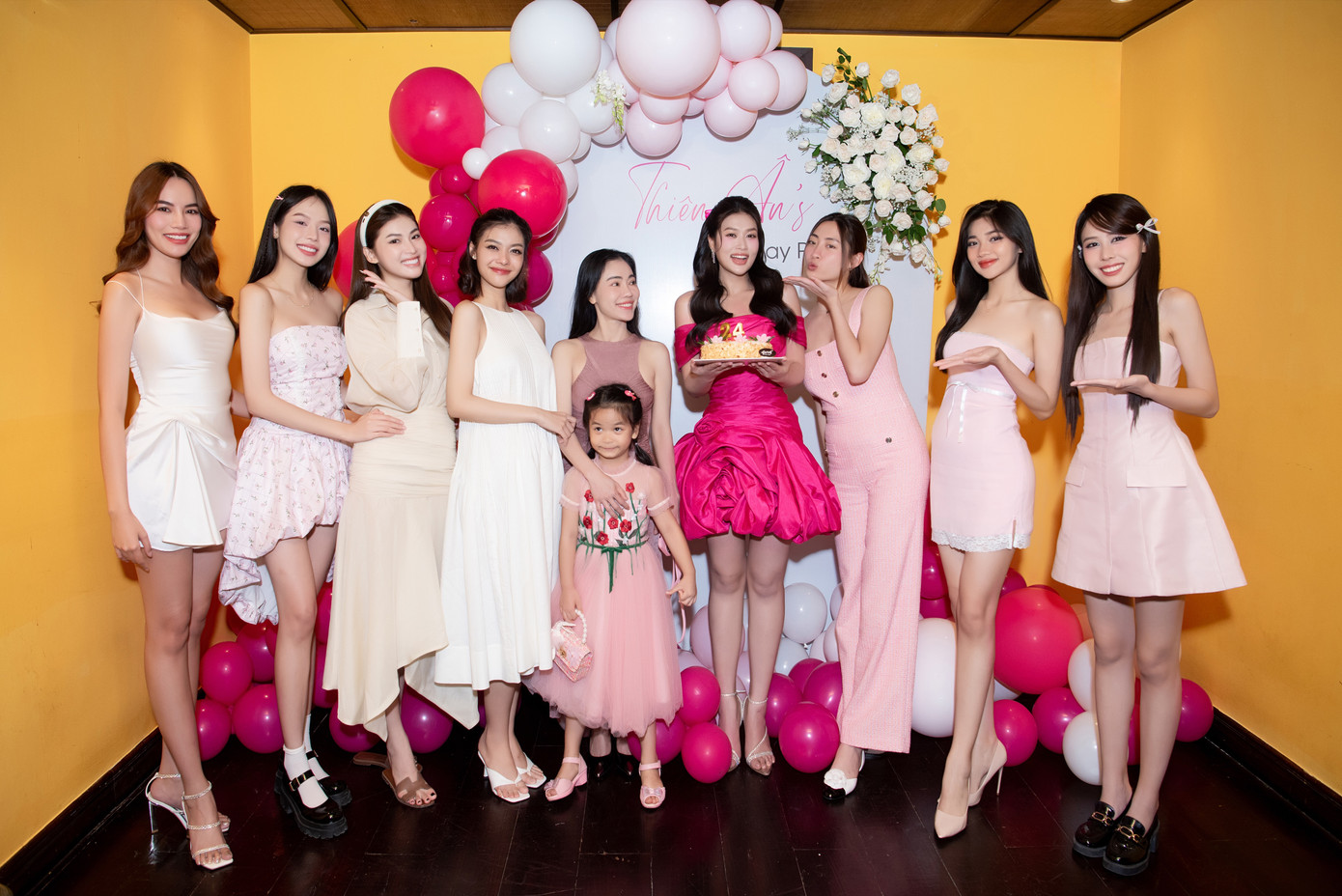 Dàn 'mỹ nhân' gồm Hoa hậu Lương Thùy Linh, Thanh Thủy, Lê Hoàng Phương, Á hậu – ca sĩ Lona, Á hậu – ca sĩ Hera Ngọc Hằng, Ngọc Thảo, Minh Kiên… đã bí mật lên kế hoạch và tổ chức sinh nhật cho Thiên Ân.