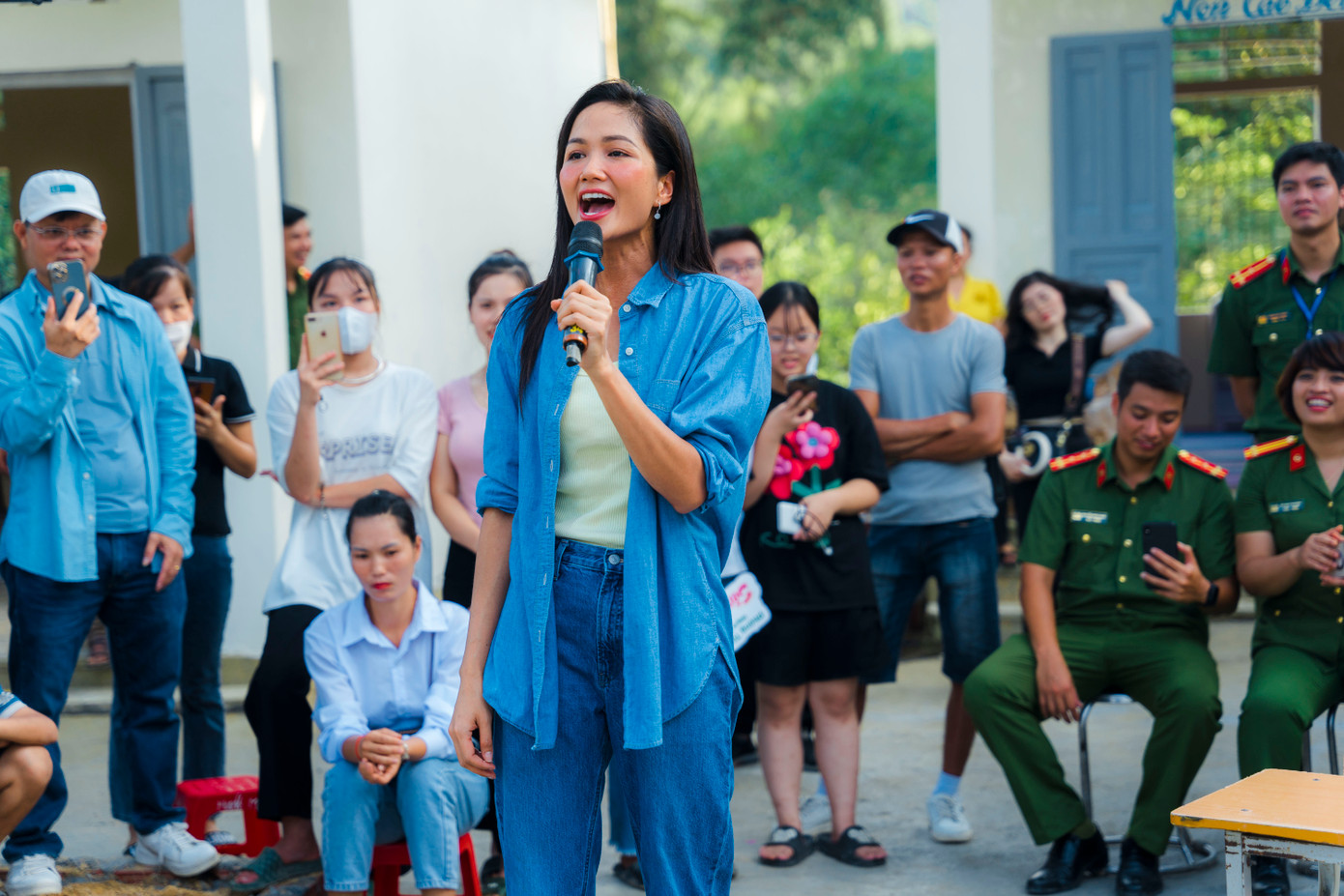 ‘Nàng Hậu’ cho biết: “Các con ơi, đây là những điều mà tất cả cô chú, những người luôn yêu thương và dành sự quan tâm đặc biệt cho các con. Có thể không sát cánh cùng các con từng ngày nhưng vẫn quan sát từ xa, nhìn hình ảnh các con thiếu thốn về cơ sở ở điểm trường, khó khăn về đồ dùng học tập, mọi người đều xúc động và muốn dành những điều thật tốt đẹp cho các con… Các con được học ở một vị trí có non cao, núi xanh và đây là nơi khởi đầu, cho các con nền tảng cho các con theo đuổi việc học tập”.