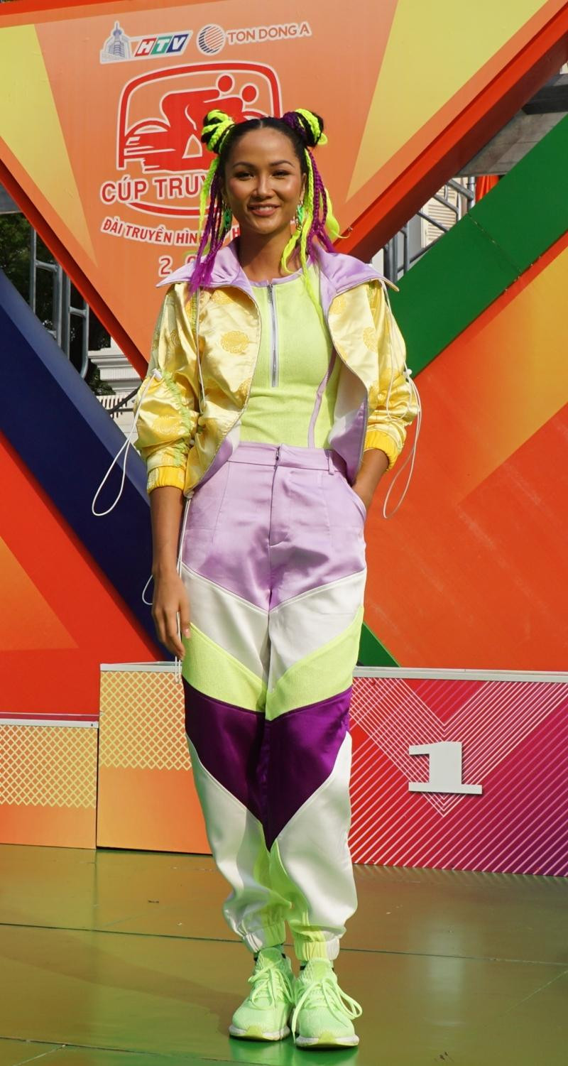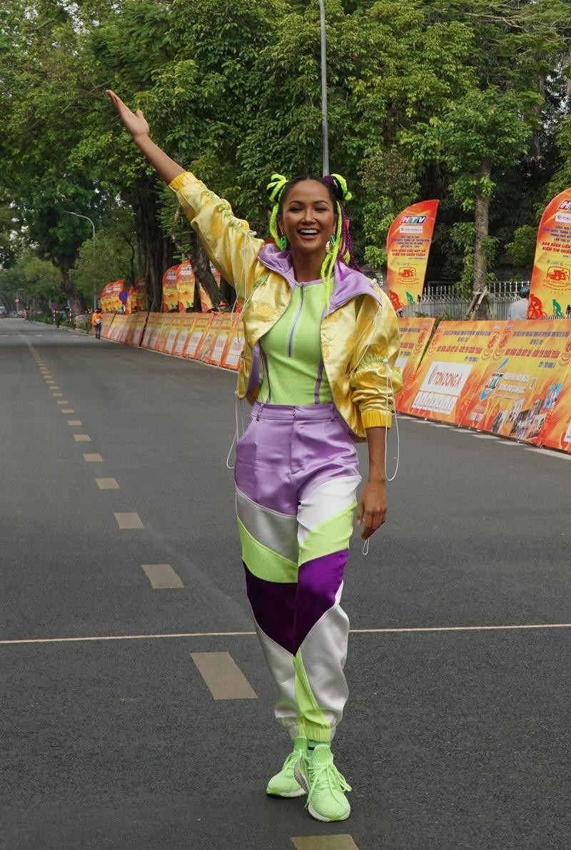 HHTO - Đồng hành cùng cuộc đua xe đạp tranh cúp truyền hình HTV 2021 trong chặng ở Huế, Hoa hậu H’Hen Niê tiếp tục tạo ấn tượng với khán giả bằng kiểu tóc tết hai búi, đồ thể thao màu nổi. Cô được netizen khen đáng yêu như “Natra Thái tử”.