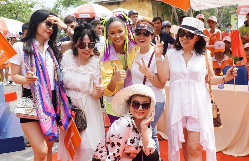 Cô cũng nhận được sự yêu quý đặc biệt của người dân tới cổ vũ cuộc đua, rất nhiều người đã đề nghị được chụp ảnh chung, nàng hậu vô cùng thân thiện, vui vẻ nhận lời.
